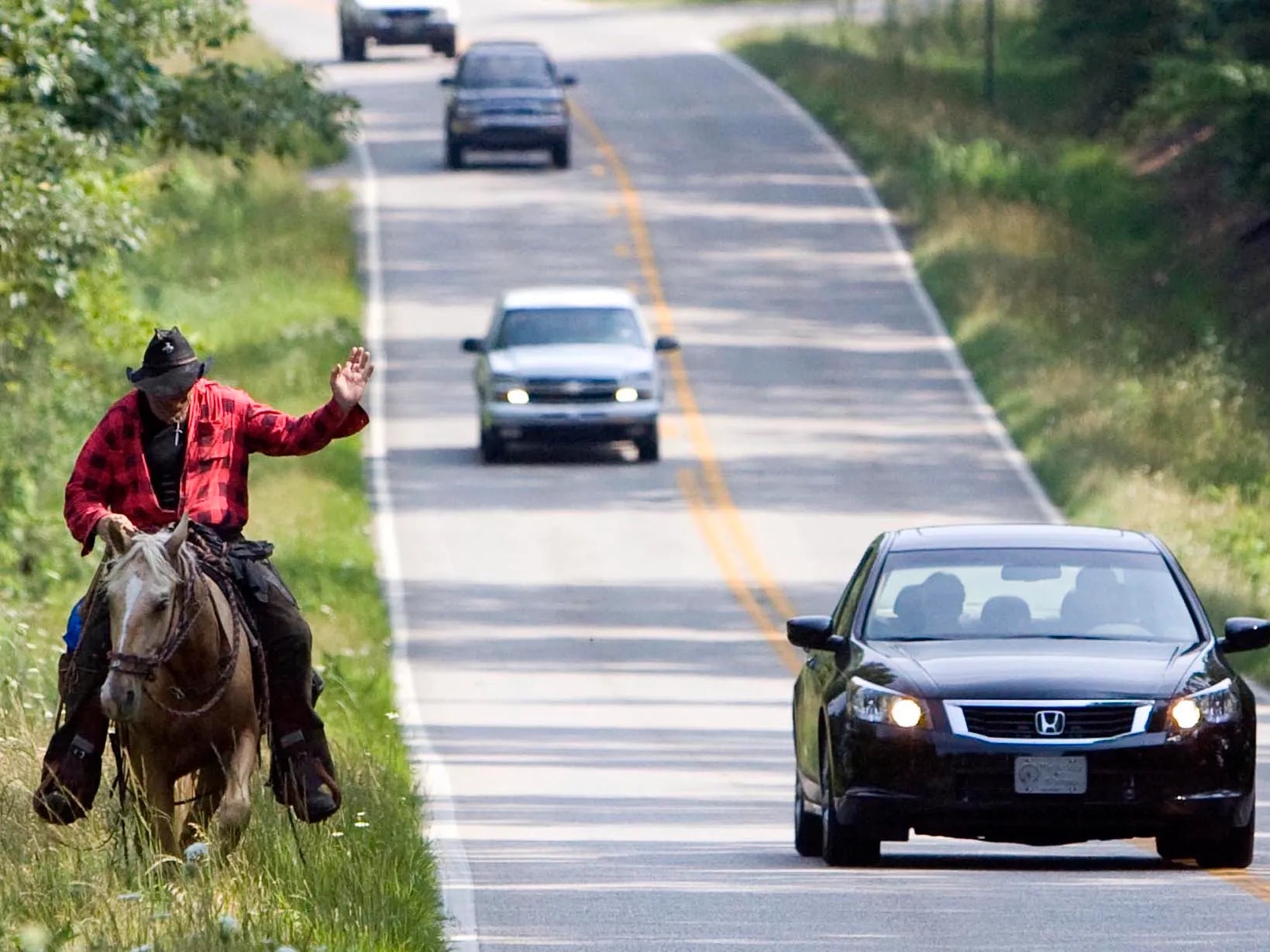 United States: In the United States, horseback riding on roads is allowed, but regulations differ by state. In many states, horses are considered non-motorized vehicles, requiring riders to follow traffic laws, such as obeying signs and signals. For example, California permits riding on roads but prohibits it on freeways for safety reasons. Some other states mandate riders to keep to the right-hand side of the roads and use reflective gear for night riding.