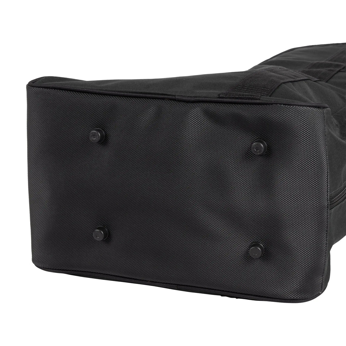 Huntley Equestrian Tall Riding Boot Bag, Black is constructed with a durable, polyester material that is made to keep your boots clean, easy to store, and ready for travel. The Huntley Tall Boot bag has a classic design that includes a carrying handle at the top, single zipper opening for easy access to one large compartment, metal ventilation tabs on each side for breathability, exterior small zippered pocket for storage, exterior open pocket for easy access, exterior reinforced bottom that includes 4 cleats. The Huntley Tall Boot bag offers plenty of space for long foot beds and clearance to access to Tall boots. This bag will keep boots protected from dust, scuffs, and provide safe storage for your boots. The Huntley Boot bag measurements are 14.5" Inches long x 23.5" inches high x 9.5" inches wide. The Huntley Boot Bag stays upright with boots stored and sits firmly with a coated, reinforced bottom material. The Huntley Tall Boot Bag will keep your boots in great shape, dust free, easy to use and store.