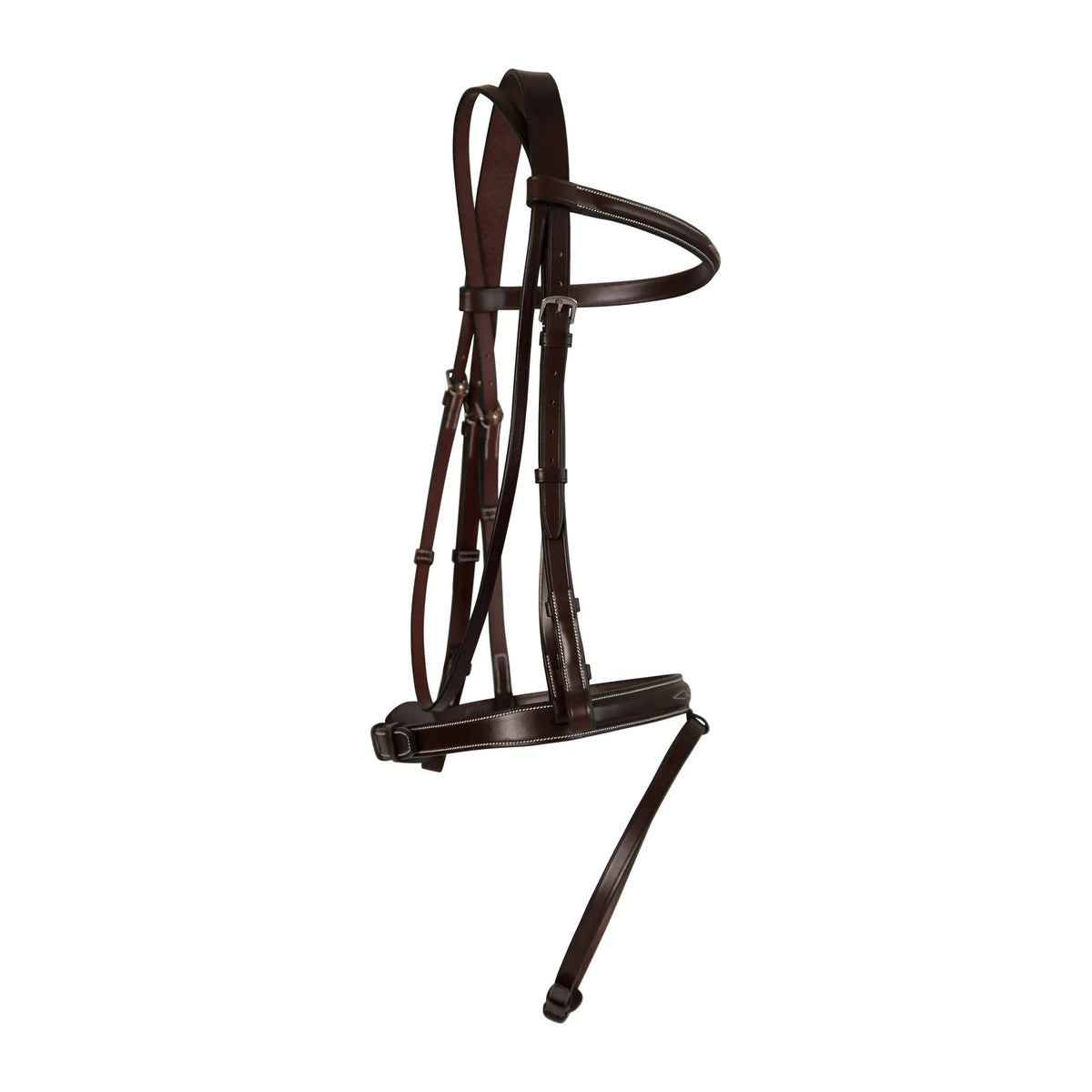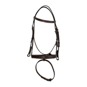 Huntley Equestrian Sedgwick Leather Fancy Stitched Square Raised Bridle with a fixed flash attachment to the noseband. Bridles includes Fancy stitched laced reins. Available in Full and Cob sizes. Sedgwick Havana color.