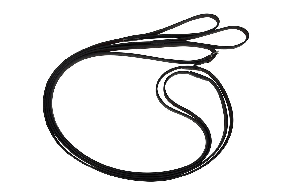 These draw reins feature convenient loop ends, allowing for seamless attachment to your saddle or girth. They are perfect for training exercises that focus on improving contact, balance, and responsiveness in your horse. The reinforced stitching guarantees a secure hold, while the smooth, finely finished leather offers an elegant appearance suitable for any training setting.