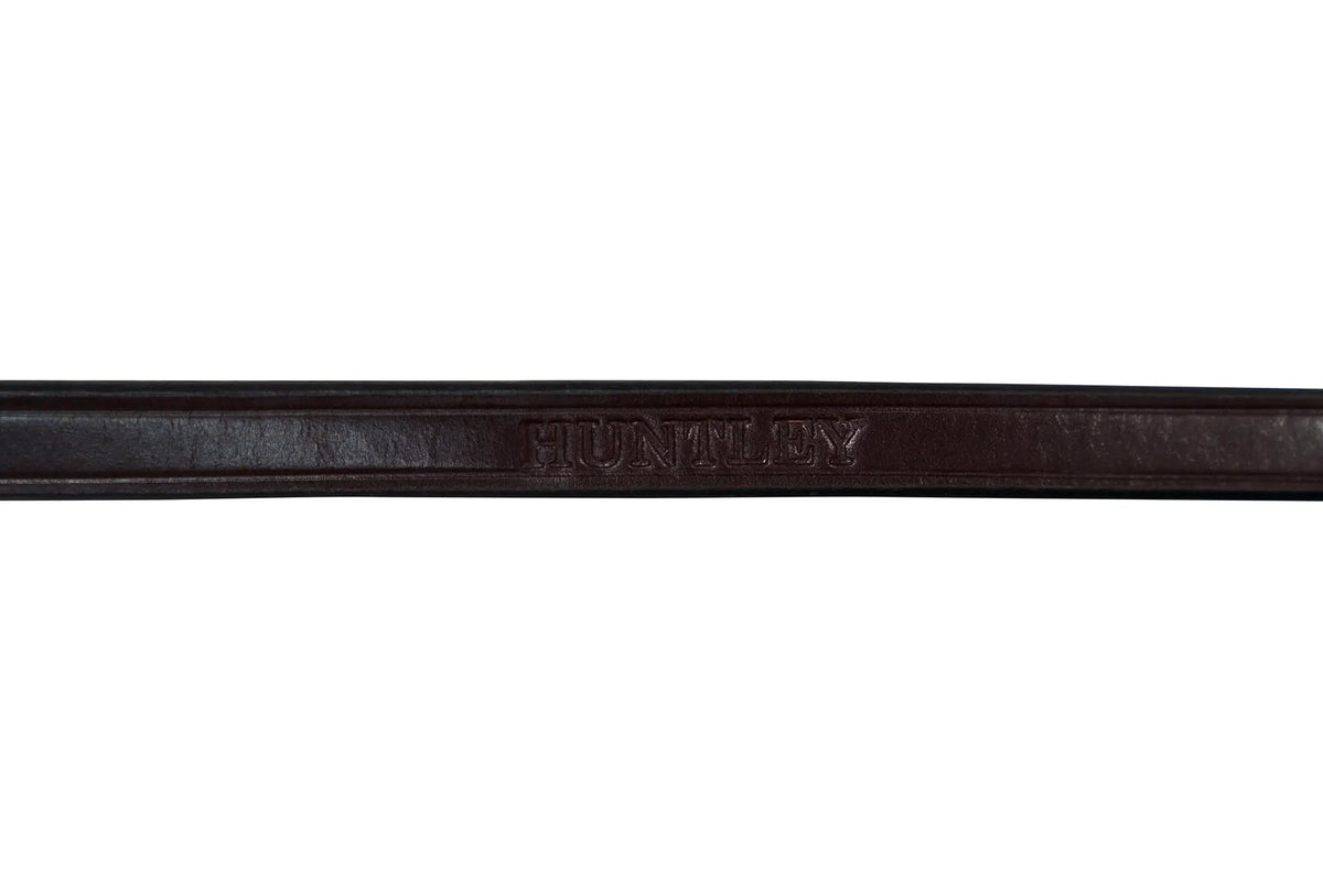 Huntley Equestrian Sedgwick Pelham Flat Curb Rein, Rubber Lined is designed to provide riders with extra control, especially in situations where maintaining a firm yet delicate hold on the reins is essential. The rubber lining is particularly useful in wet conditions or when extra grip is needed, without compromising the elegance and traditional look of the leather exterior. Handmade with Sedgwick Australian Nut English Leather, finished with a hook and closure loop. Huntley Pelham reins are 1/2" wide and will compliment any hunter bridle. The Huntley Pelham reins are constructed of strong, soft English Sedgwick leather that are nice enough for the show ring and everyday riding. Available in size Full 56" Inch length, Sedgwick Australian Nut leather.