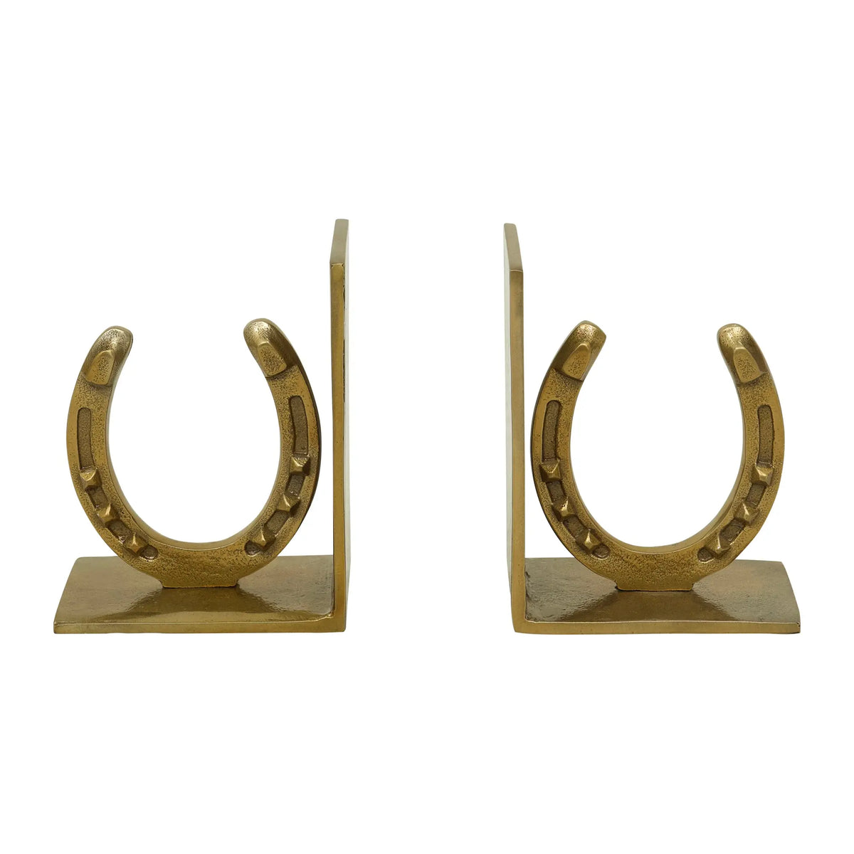 Add a touch of equestrian charm to your bookshelf with the Huntley Horse Shoe Pair of Bookends. Crafted from sturdy metal with a rich brass antique finish, these bookends feature a classic horseshoe design, symbolizing luck and timeless elegance. Perfect for organizing books in an office, study, or living room, they offer both style and stability. Whether you're an equestrian enthusiast or looking for a unique decorative accent, this pair of bookends makes a sophisticated statement while keeping your favorite reads neatly in place.